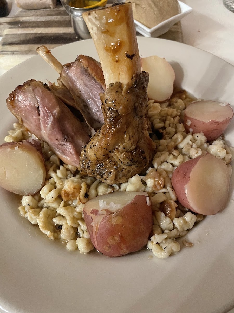 Excellent food with large portions. The menu said the Tour of Germany platter can feed two but it is large enough for four. My only disappointment was the liver dumpling soup was not on the menu. The potato soup I had was terrific. Our waitress Reanna was great! Do make reservations if you go after 4pm.